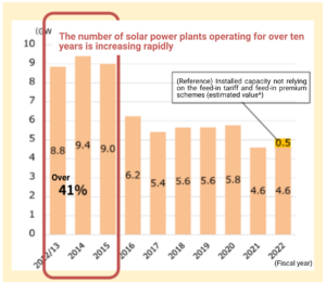 Approximately 13 years have passed since the feed-in tariff (FIT) program started in 2012. Today, power plants with over 10 years of operation account for more than 40% of the total.